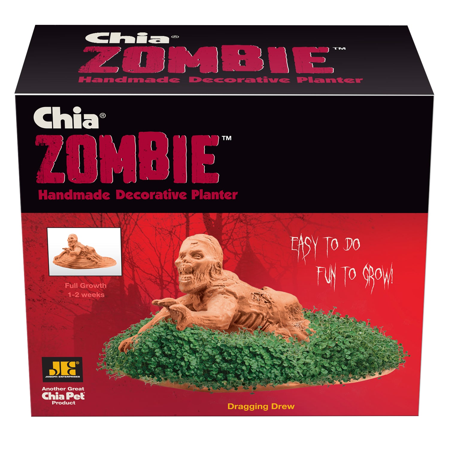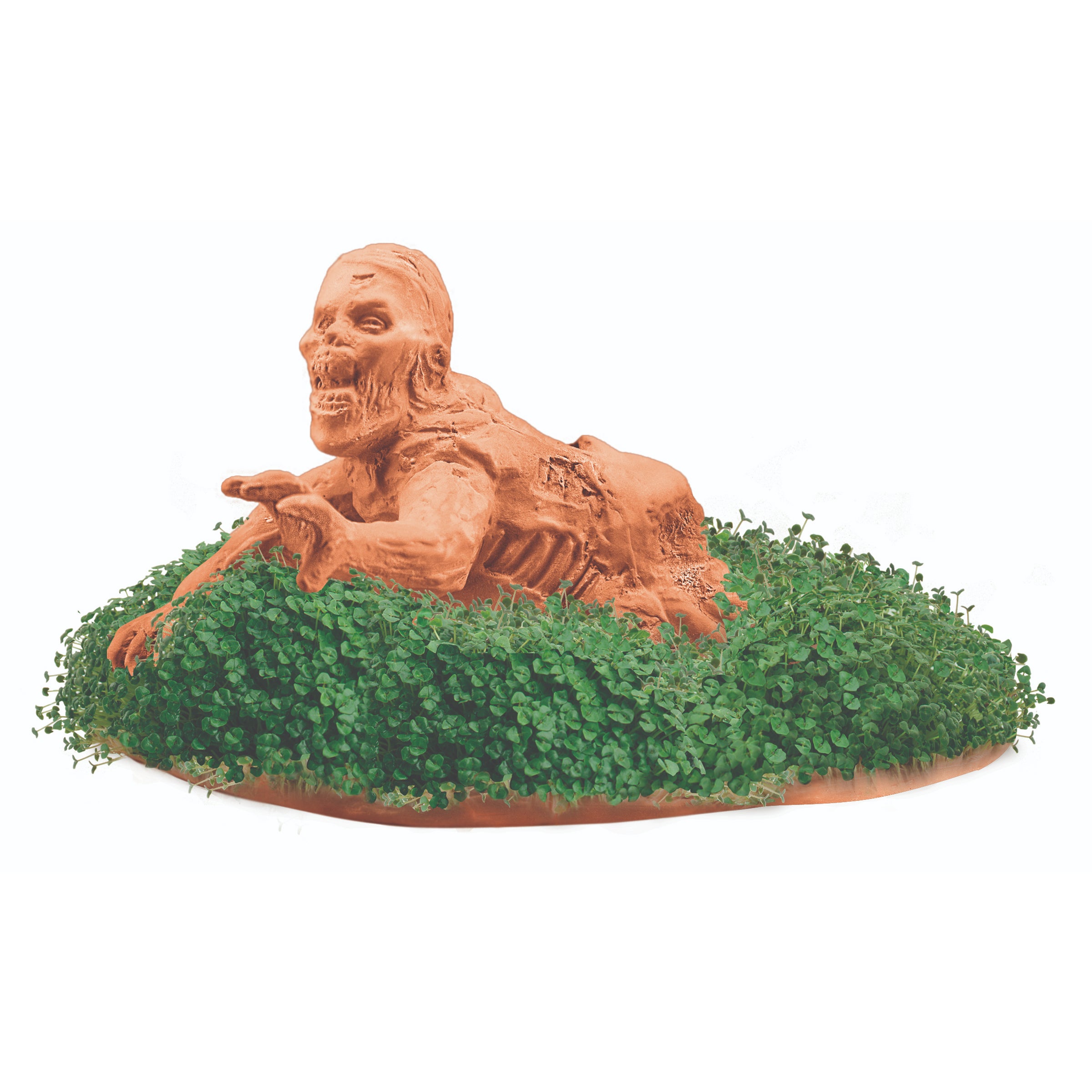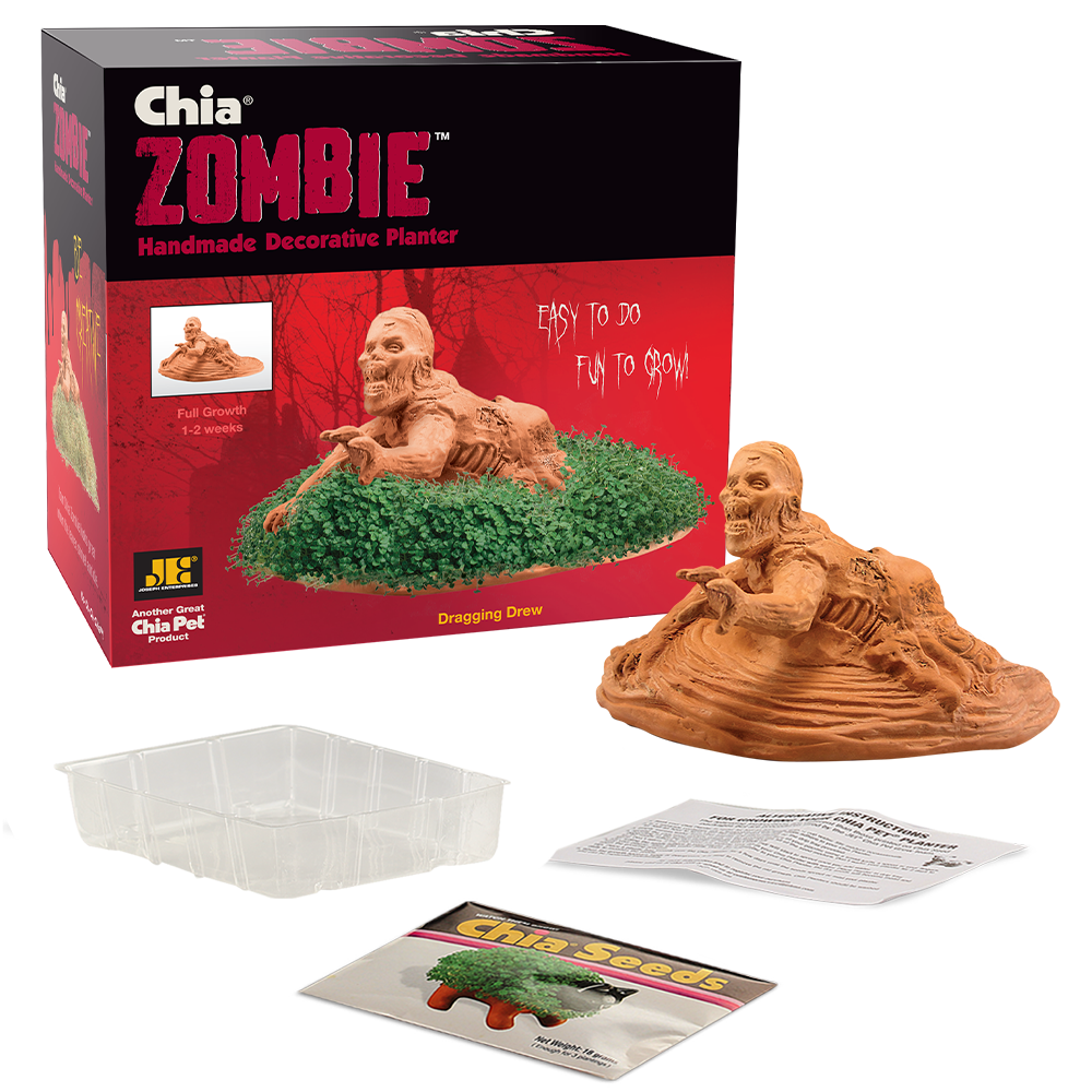 Got zombies on the brain? Then you’ll love the Zombie Crawler Chia Pet! Don’t be afraid of Dragging Drew… he’s just reaching out to say hi! Add some new life to the living dead with this unique terra cotta planter. Chia Pets are a fun and interactive activity for all ages. Just plant your chia seeds and watch your zombie develop into a hilarious, horrifying creation from beyond the grave in just 1-2 weeks! The Zombie Chia Pet is perfect for Halloween and makes a great gift for anyone who loves zombies, horror movies, or just eccentric home décor!